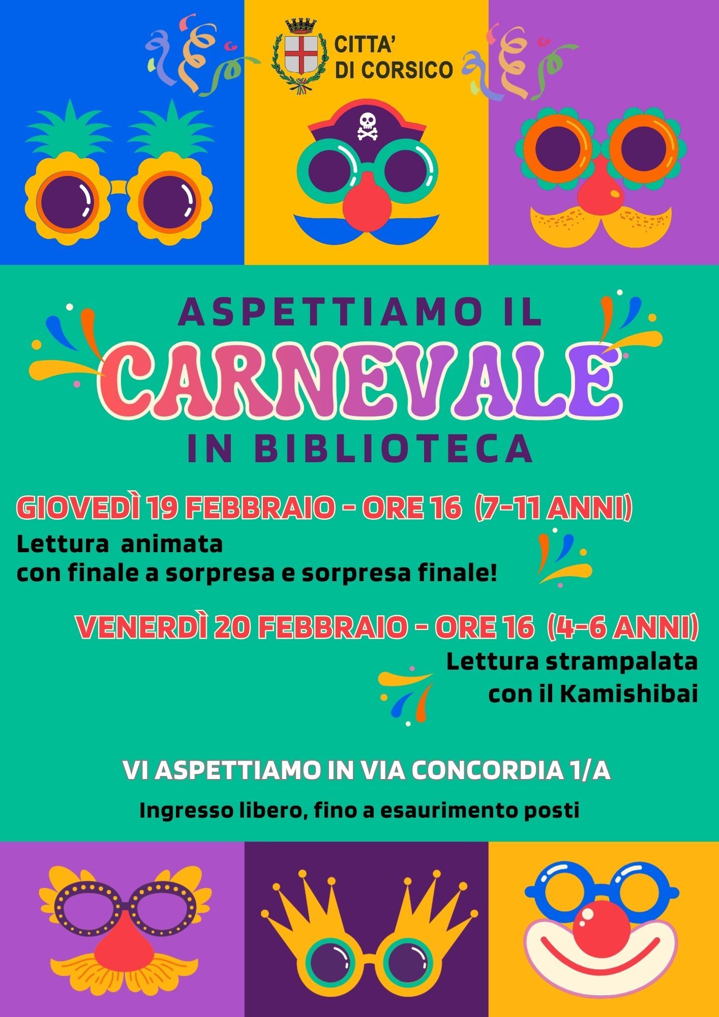 🤡🎉 Grazie all’Amministrazione Comunale e con la collaborazione di Confcommercio Corsico, sarà ancora una volta una “Corsico a colori” quella che prenderà vita sabato 21 febbraio dalle ore 15.30 alle 19 nel centro storico della città, in occasione del Carnevale 2026 con tante attrazioni adatte a un pubblico di famiglie.