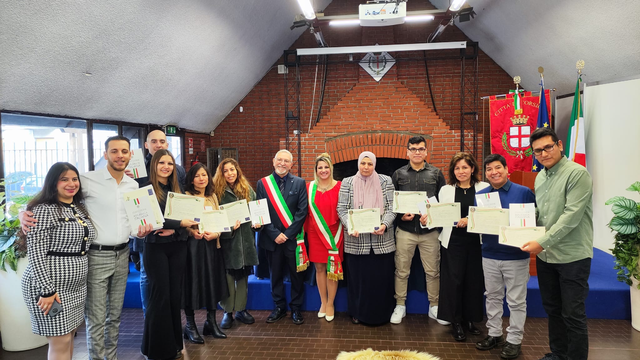 Corsico (17 gennaio 2024) – Tanta emozione ha accompagnato la cerimonia che ha visto protagonisti Lucy, Jorge Luis, Esteven Jorge, Luis Fernando, Hala, Eva Maria, Karen Estefania, Isabela e Girgis, a tutti gli effetti cittadini italiani. Per la prima volta, l’assessoraAngela Crisafulli, con delega ai Servizi di cittadinanza, ha voluto organizzare una cerimonia collettiva, un momento di partecipazione a cui hanno preso parte anche i familiari e gli amici dei nuovi cittadini italiani.