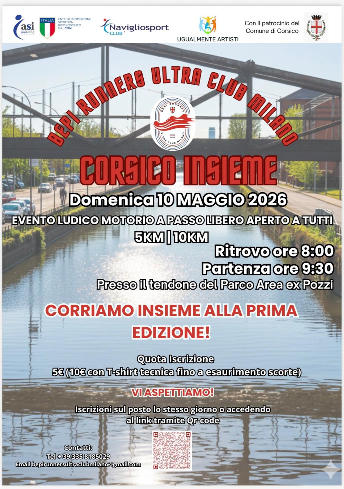 Bepi Runners Ultra Club Milano con il patrocinio del Comune di Corsico da il via alla prima edizione di “Corsico Insieme”: evento ludico-motorio a passo libero aperto a tutti (5km/10km)