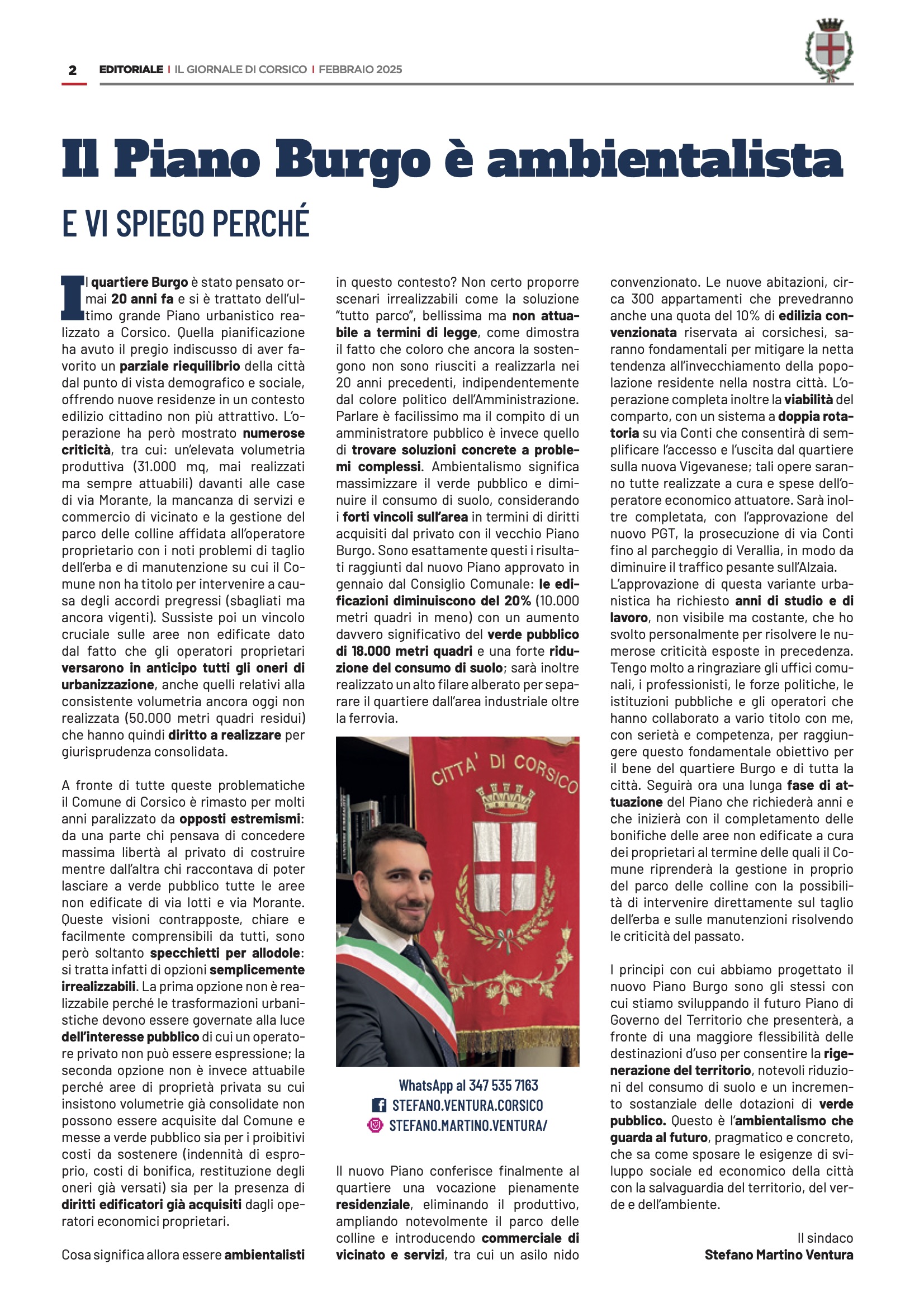 I principi con cui abbiamo progettato il nuovo Piano Burgo sono gli stessi con cui stiamo sviluppando il futuro Piano di Governo del Territorio che presenterà, a fronte di una maggiore flessibilità delle destinazioni d’uso per consentire la rigenerazione del territorio, notevoli riduzioni del consumo di suolo e un incremento sostanziale delle dotazioni di verde pubblico. Questo è l’ambientalismo che guarda al futuro, pragmatico e concreto, che sa come sposare le esigenze di sviluppo sociale ed economico della città con la salvaguardia del territorio, del verde e dell’ambiente.
