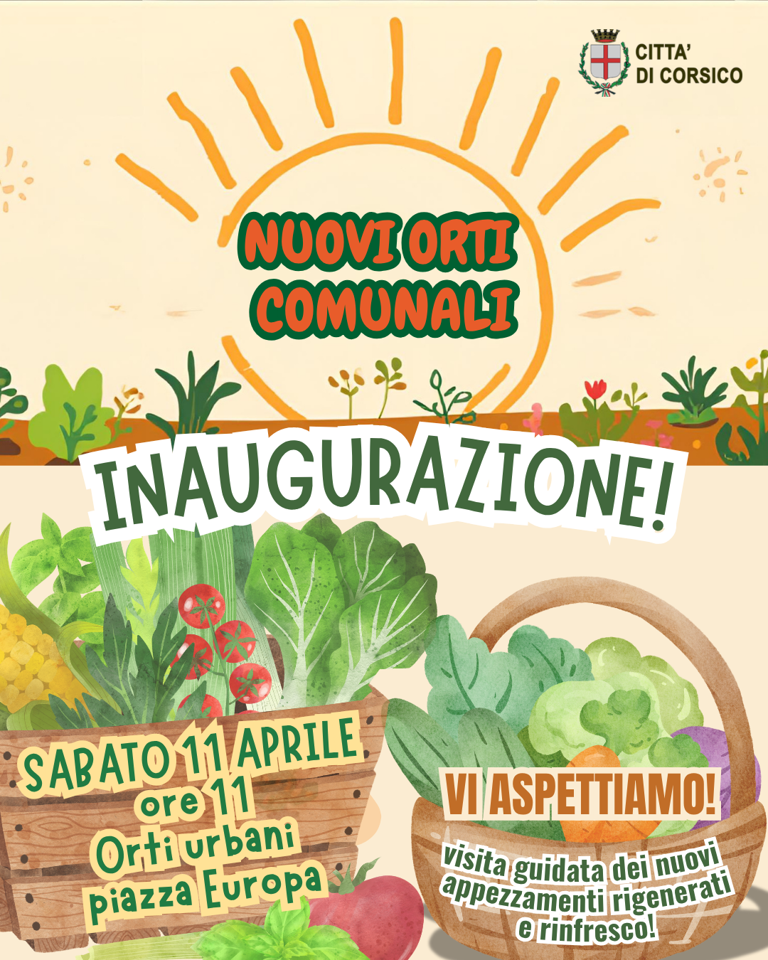 Sabato 11 aprile, dalle ore 11, si terrà l’inaugurazione dei nuovi orti. Sarà possibile visitare i nuovi appezzamenti e l’area completamente rigenerata, oltre a scoprire tutti i dettagli del Regolamento.