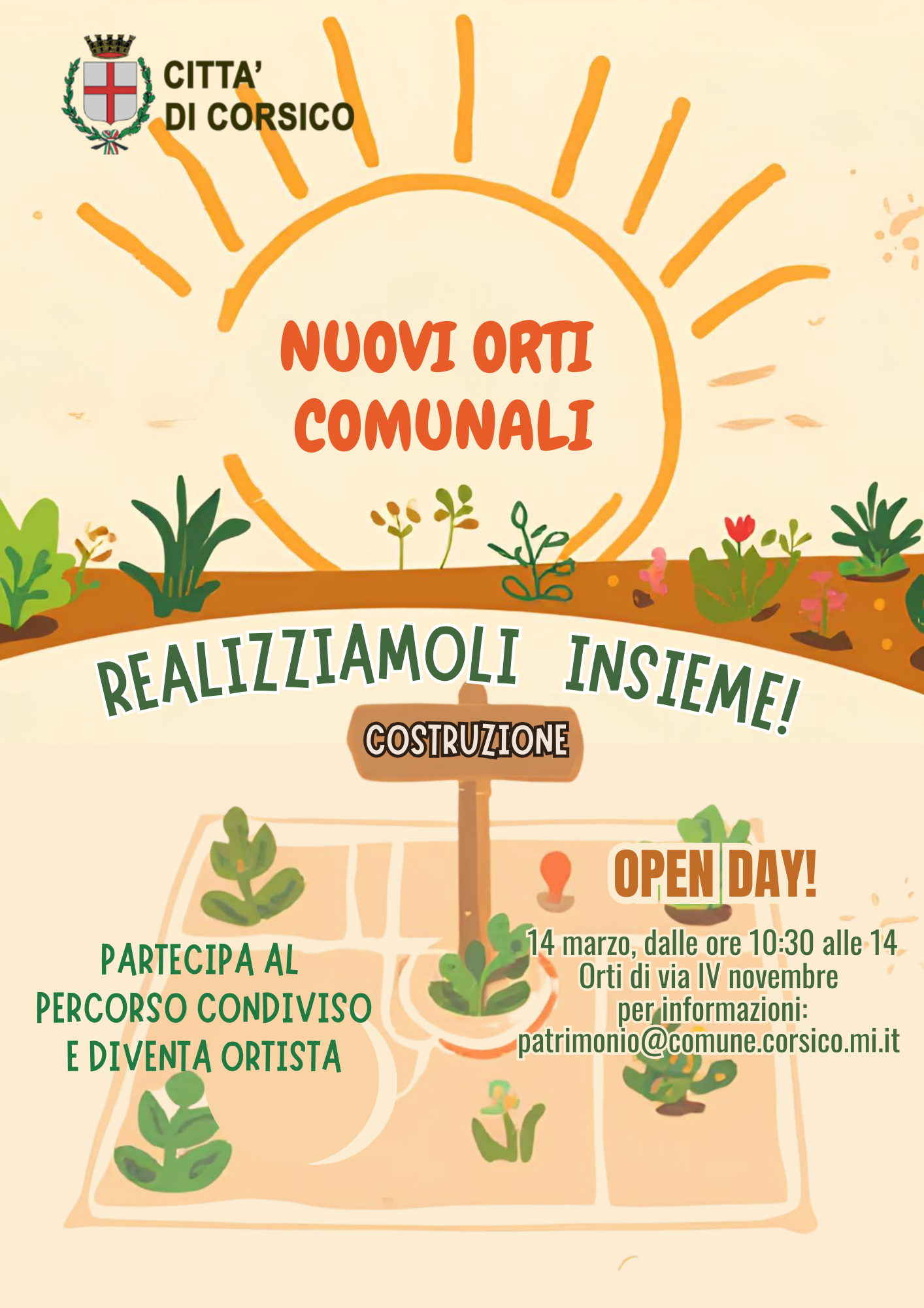 Per chi è interessato ad avere un orto, il Comune organizza per sabato 14 marzo, dalle ore 10.30 alle 14, un “Open Day” agli Orti di via IV novembre.