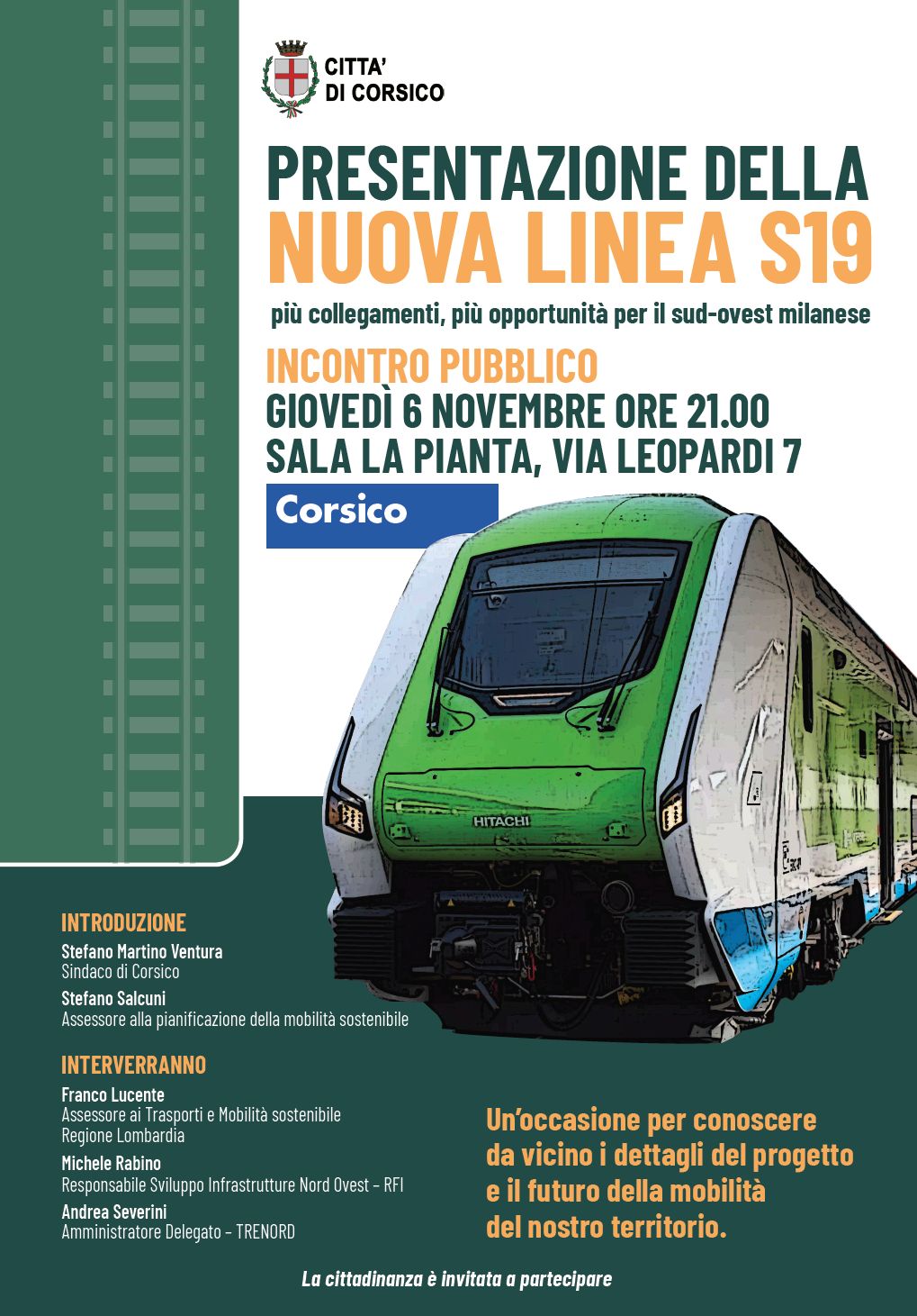 All’incontro pubblico interverranno il Sindaco di Corsico Stefano Martino Ventura, l’Assessore alla pianificazione della mobilità sostenibile Stefano Salcuni, l’Assessore di Regione Lombardia ai trasporti e alla mobilità sostenibile Franco Lucente, il Responsabile per lo sviluppo delle infrastrutture Nord-Ovest della RFI (Rete Ferroviaria Italiana) Michele Rabino e l’Amministratore Delegato di Trenord Andrea Severini.