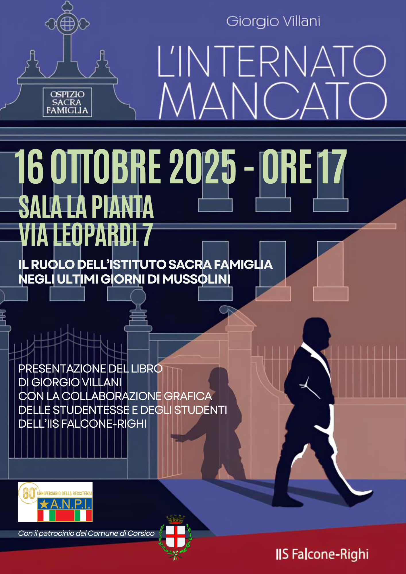 Giovedì 16 ottobre 2025, ANPI sez. Corsico, con il patrocinio del Comune di Corsico, organizza, alle ore 17 presso la Sala La Pianta (via Leopardi 7), la presentazione del libro di “L’internato mancato” di Giorgio Villani, realizzato con la collaborazione grafica delle studentesse e degli studenti dell’IIS Falcone-Righi.
